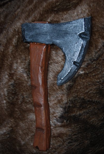 Pour la garde et la lame c'est déjà patiné et brossé , c'est la photo qui donne cet effet " uni " mais elle ne l'est pas dutout en réalité , je repasserai une couche plus foncée de brossage marron sur le manche mais rien de plus avant vernissage definitif , bien que dans le cas de mes armes avec le melange DIP/latex on peu peindre directement a l'acrylique dessus sans que cela parte enssuite et j'ai egalement peint dans la masse la couleur uni de base