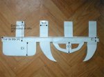 Une fois tout ça coupé, coller la bande plate qui servira à « fermer » le casque autour de la tête, et coller enfin la croix servira à « fermer » le dessus du casque, on obtient alors ça :