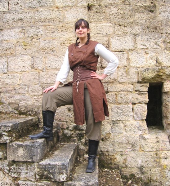 Et enfin la tenue que je viens de finir pour le gn Haut-Royaume de Clepsydre la semaine prochaine. Ce coup-ci j'ai tout cousu moi-même, j'en suis plutôt contente puisque c'était mon premier vrai travail de couture, sans patron(sauf pour la grande cape) mais pas mal basé sur les conseils de l'excellent site d'Amorphée.
