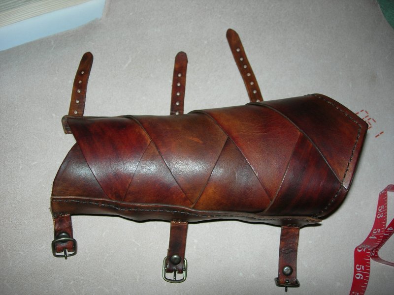La forme bombée du brassard est due au faite que c'est du cuir tanné végétal que j'ai mouillé puis laissé sécher avec la forme voulut (bombé).