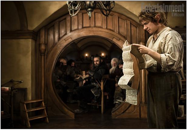 (Gandalf dans Bag-End et Bilbo lisant son contrat de voleur).