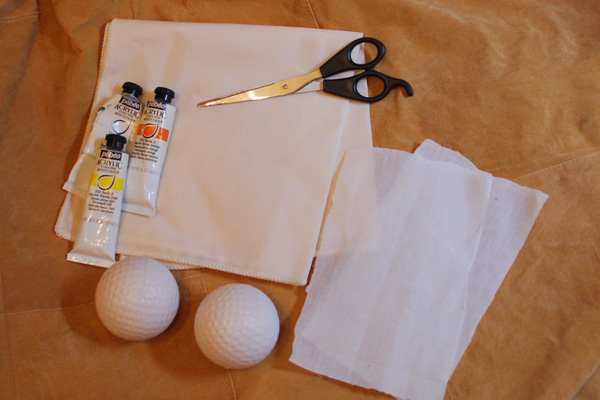 - Commencez par envelopper la balle en mousse avec plusieurs morceaux de tissu cousue et coupé grossièrement. plus il y aura de morceaux qui dépasseront, plus la boule semblera avoir de flamme.
