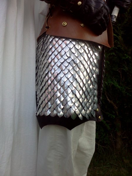 Pour l'armure de cuir, il se trouve que j'ai ceintré au niveau de la taille mais j'ai oublié de diminuer la circonférence du bas, mais cela sera bientôt fait. ^^