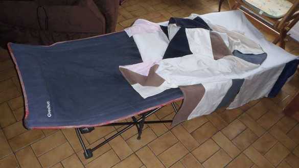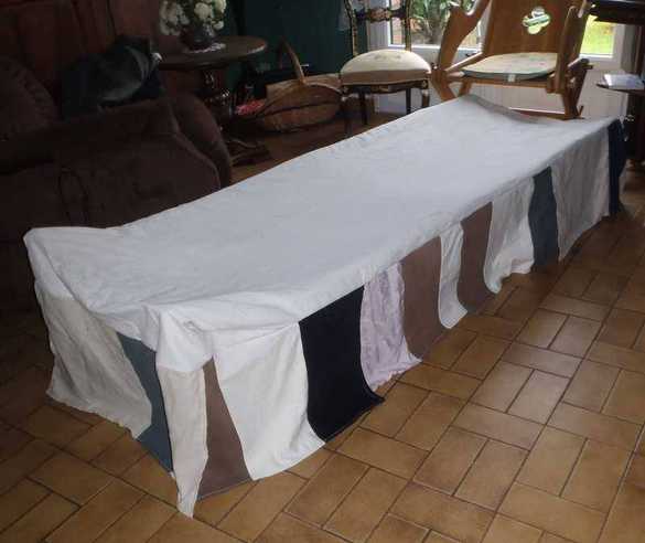 Pour le GN, je me suis fait un couvre-lit avec un vieux drap taché, et des chutes de tissus (restes de découpes, vieux pantalons...).