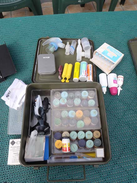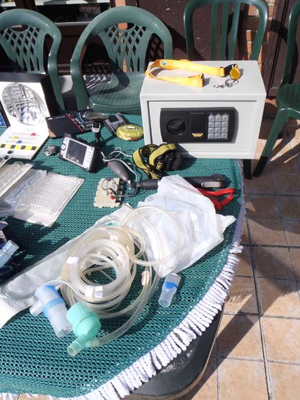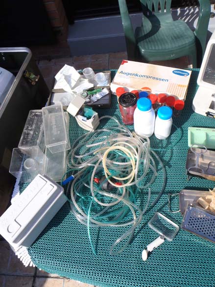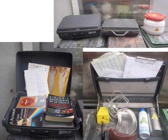 Et l'autre avec encore du matos, un thermos transformé en container radioactif, un brumisateur d'eau transformé en stérilisateur. Le porte documents possèdent encore des fiches médicales, des électroencéphalogrammes, des scans et des radios.