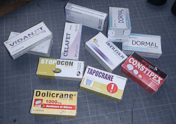 La boite à pharmacie pour le prochain GN post-apo. Avec les fausses boites de médocs.