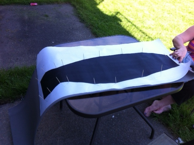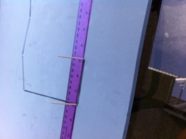 ...des cures dents ? @_@. mouais. ça aurait été plus propre de découper le patron dans le papier, poser le patron sur le tapis de sol, tracer le contour avec un feutre. Enfi, si tu y arrives, c'est la principal.
